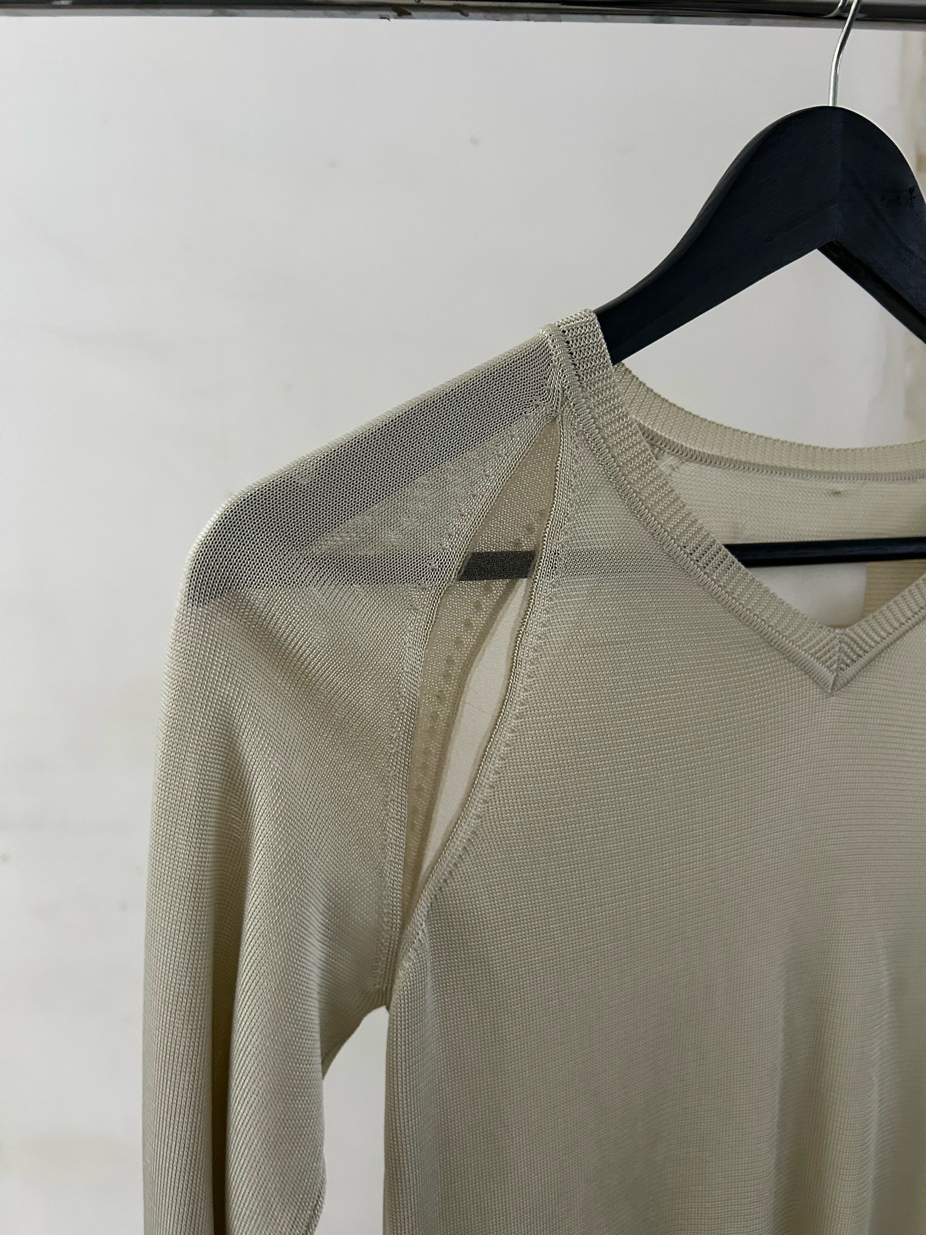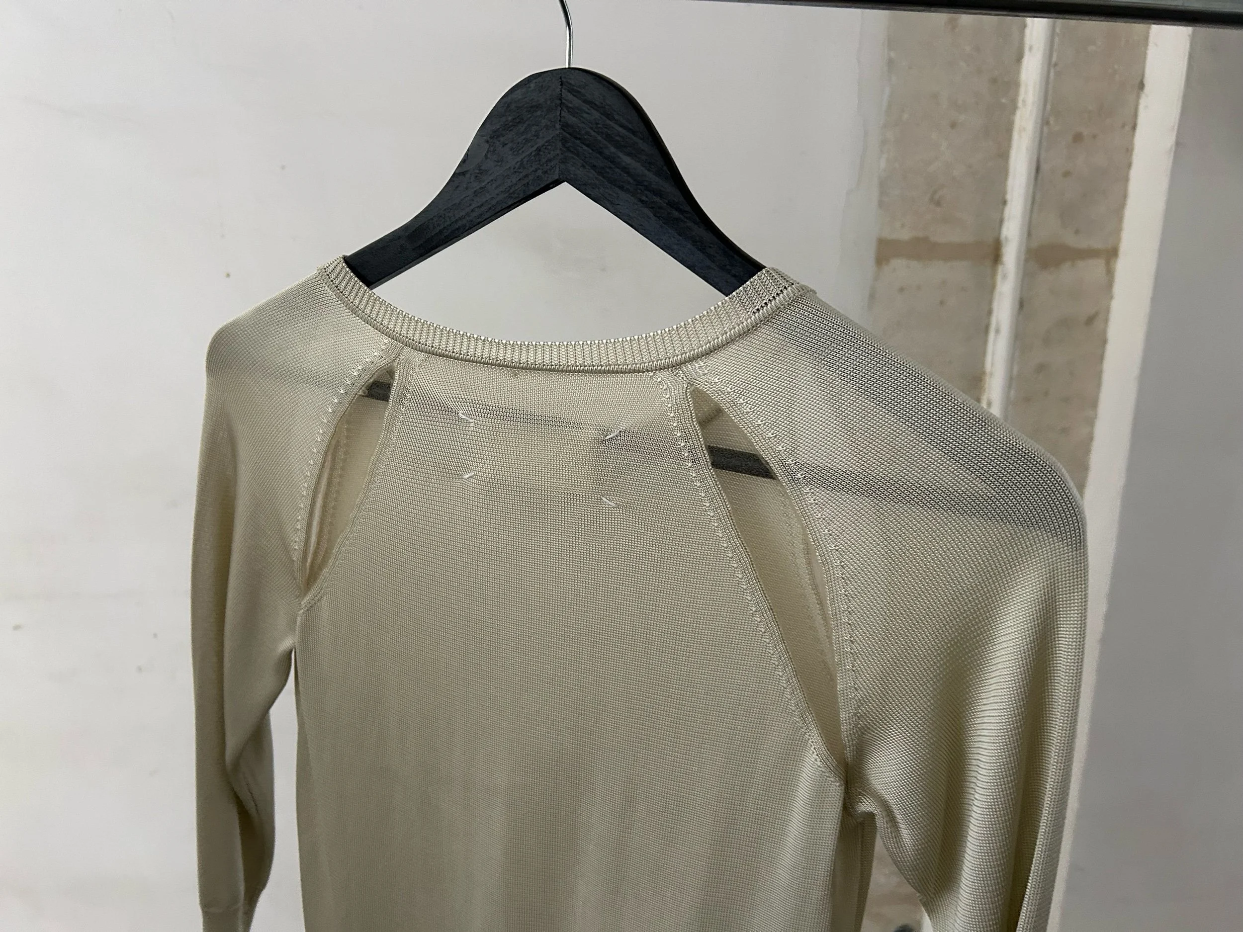 Boutique › Margiela 2007 cutout pullover ivory Image 1 of 4 Image 2 of 4 Image 3 of 4 Image 4 of 4 Margiela 2007 cutout pullover ivory €200.00 100% wool V-neck pullover with shoulder cutouts and rib trims; four-corner stitched label, made in Italy, size M. Add To Cart Added! 100% wool V-neck pullover with shoulder cutouts and rib trims; four-corner stitched label, made in Italy, size M.