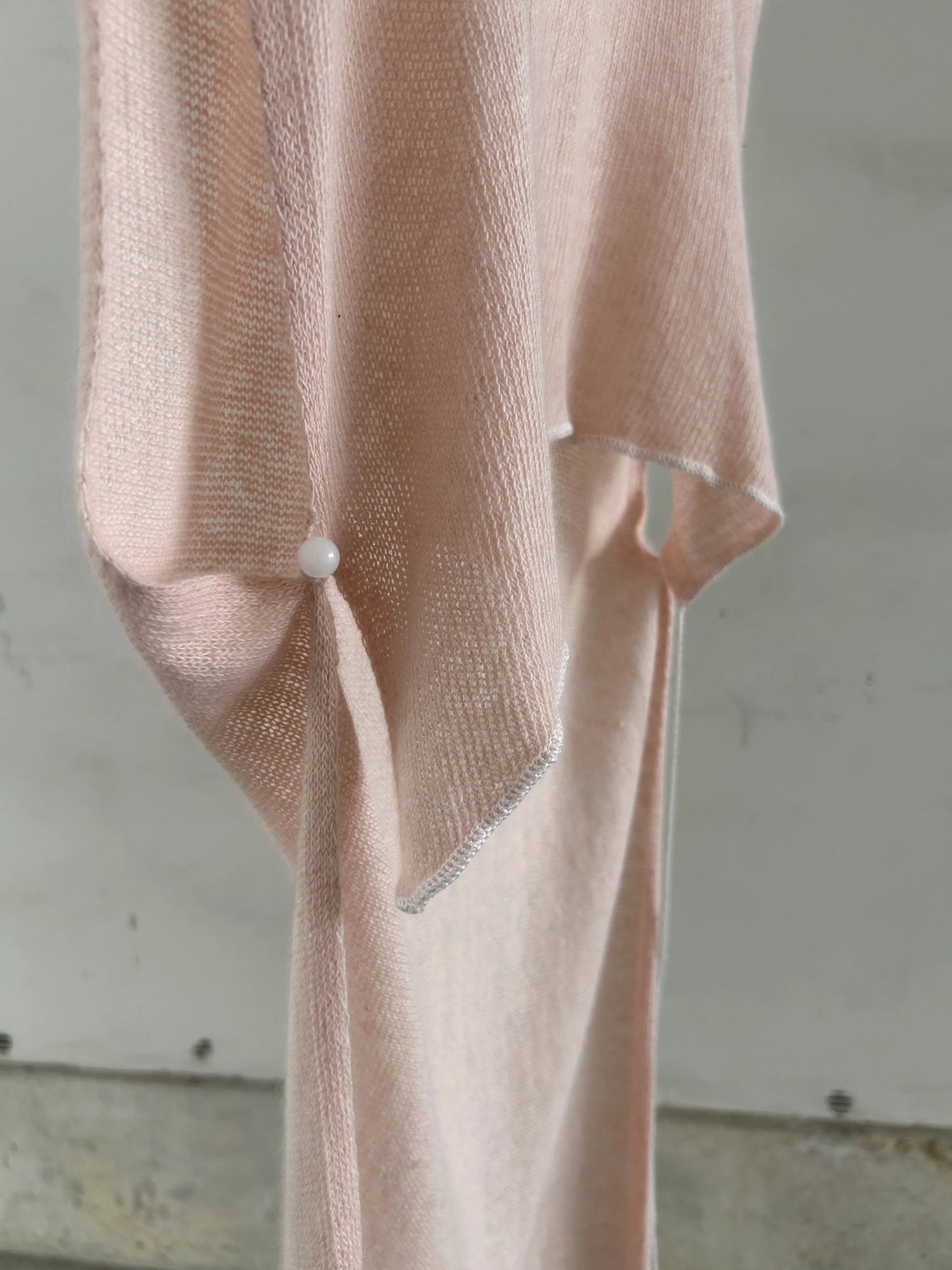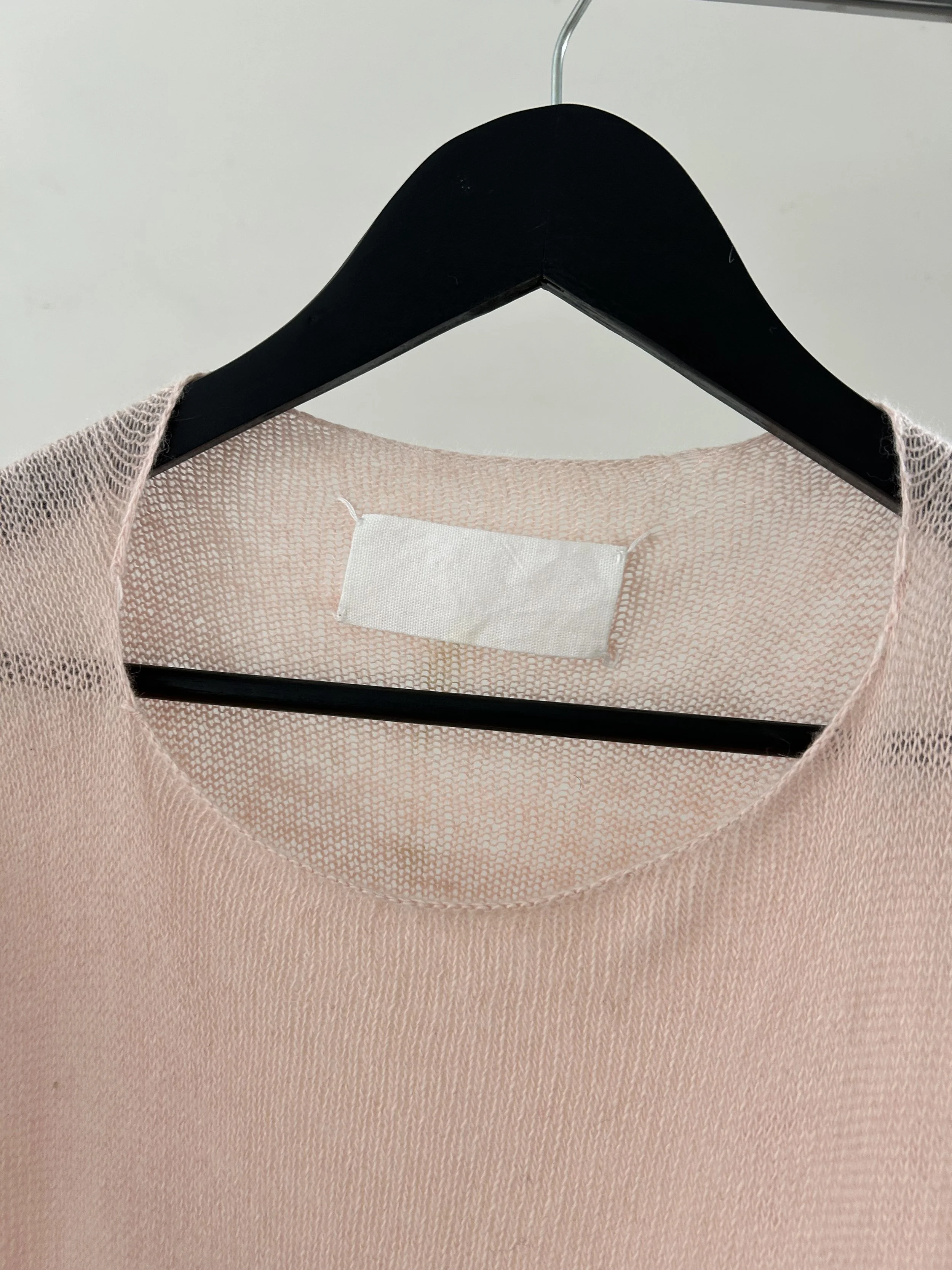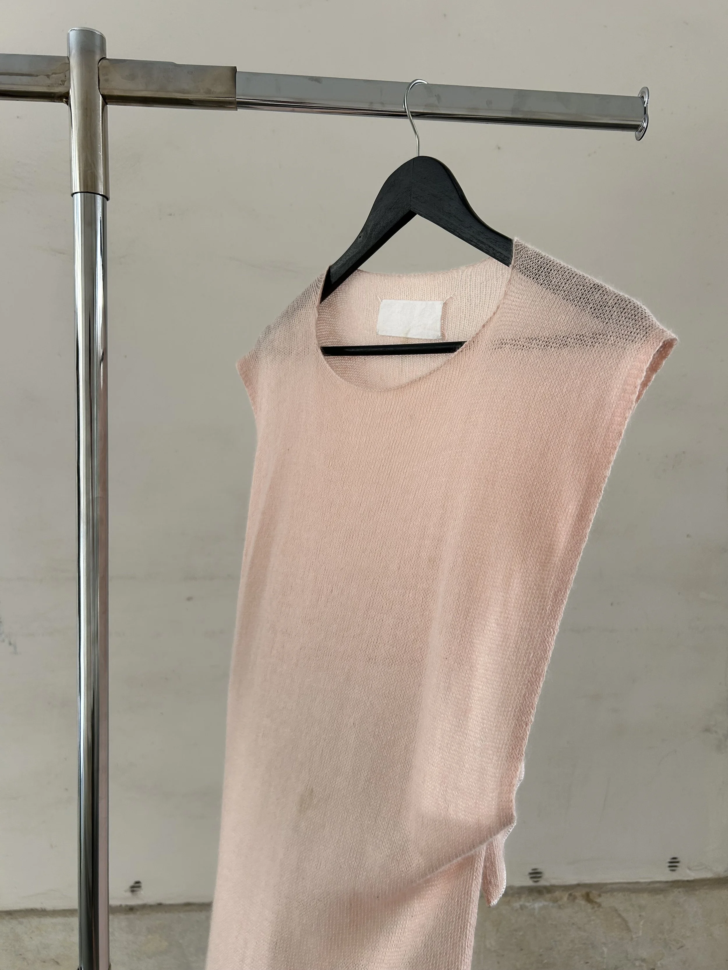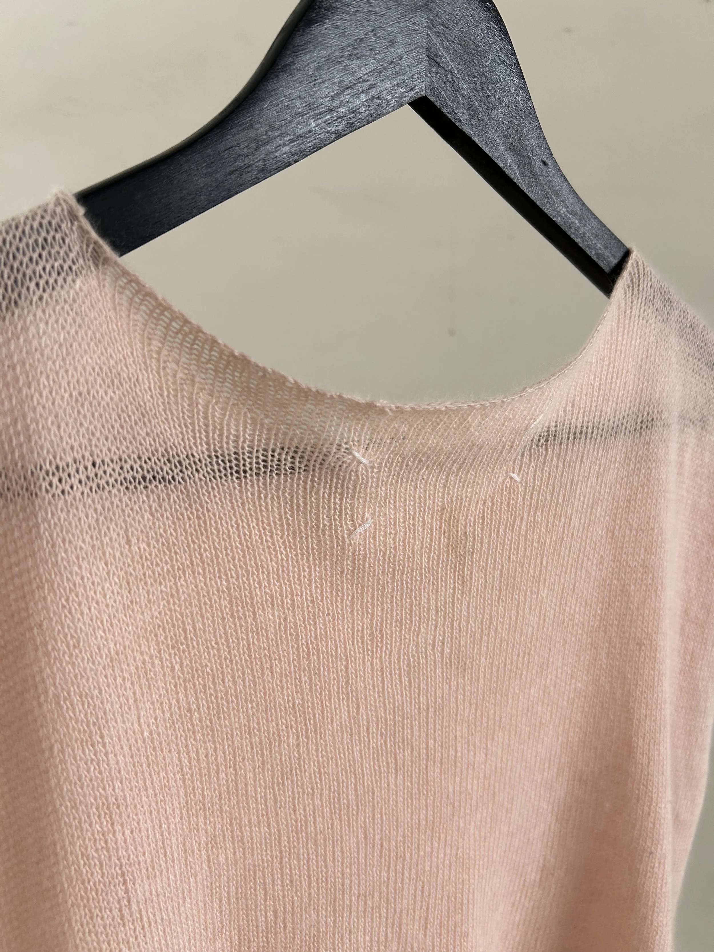 Boutique › Margiela rose knit pullover Image 1 of 6 Image 2 of 6 Image 3 of 6 Image 4 of 6 Image 5 of 6 Image 6 of 6 Margiela rose knit pullover €450.00 2000 sleeveless fine-gauge knit with open apron-back, pearl tack, blank label Add To Cart Added! 2000 sleeveless fine-gauge knit with open apron-back, pearl tack, blank label